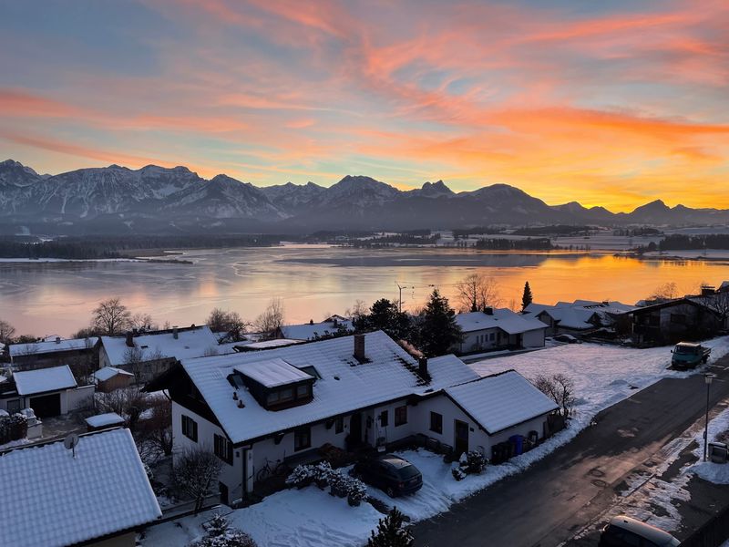 Im Stammhaus:Lichtdurchflutetes Wohn-Schlaf-Zimmer mit Naturholzboden, Schreiner-Möbeln, 140cm breitem Natur-Bett, Minibar und Lese-Sessel. Süd-Balkon mit Traum-Panorama-Blick über den See auf die Berge.Modernes Bad mit Dusche und WC.